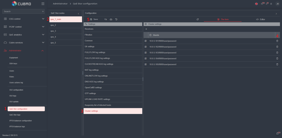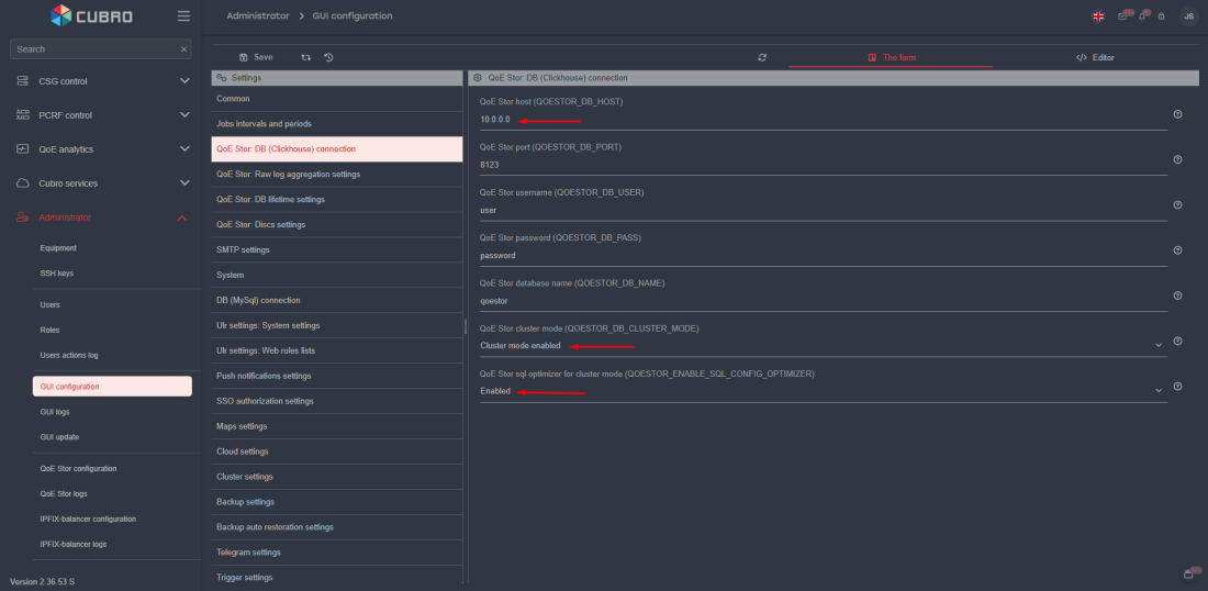 To assign a new master server, proceed to the following section of GUI: Administrator → GUI Configuration → QoE Stor: DB (Clickhouse) connection: