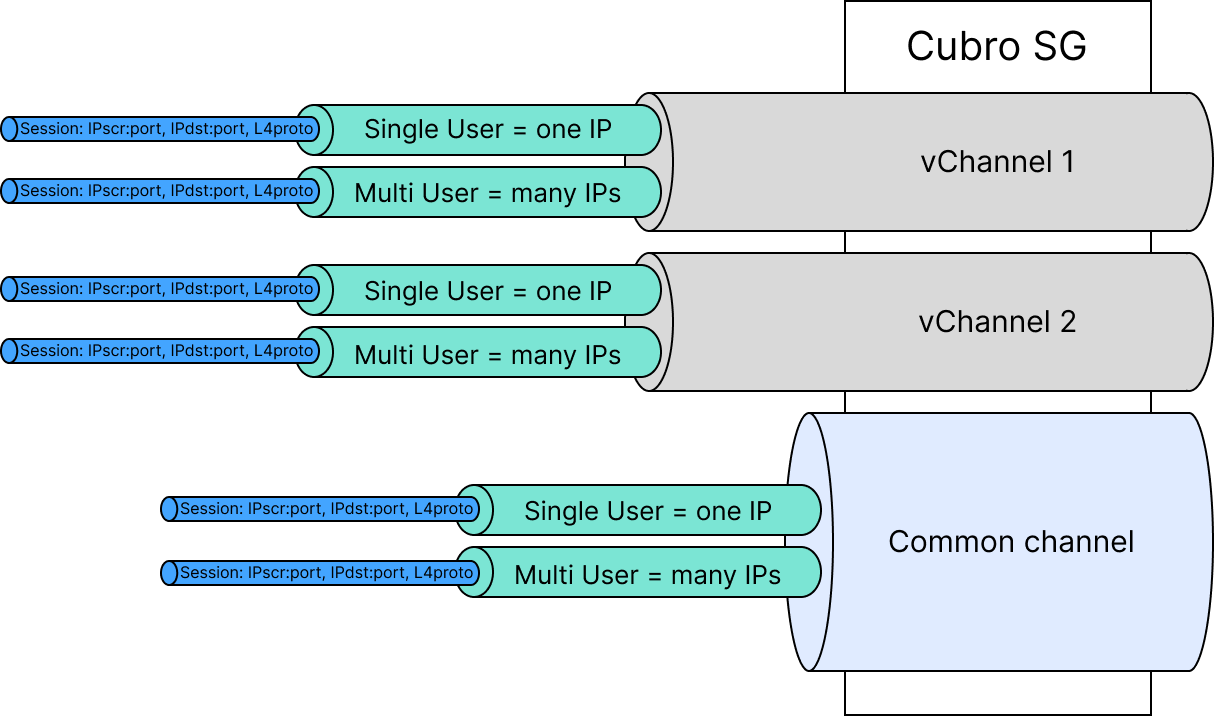Country Scaled DPI views the traffic passing through the system as a set of virtual channels (vChannels) and subscribers.