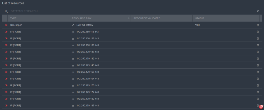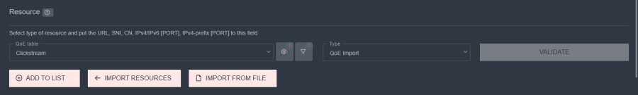 When a QoE import entry is added, the system scans the data stream — whether Clickstream, NetFlow, or DNS flow, depending on the selected rule — for matches and automatically adds the identified resources to the rule body.